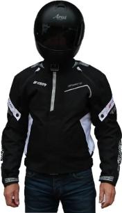 Kort sportslig jakke med mange kvaliteter. Vanntett CE polstringer på skuldre og albuer Stramminger på overarm og i livet Glidelås som passer til Masterbukse mange reflekser uttagbart varmefor