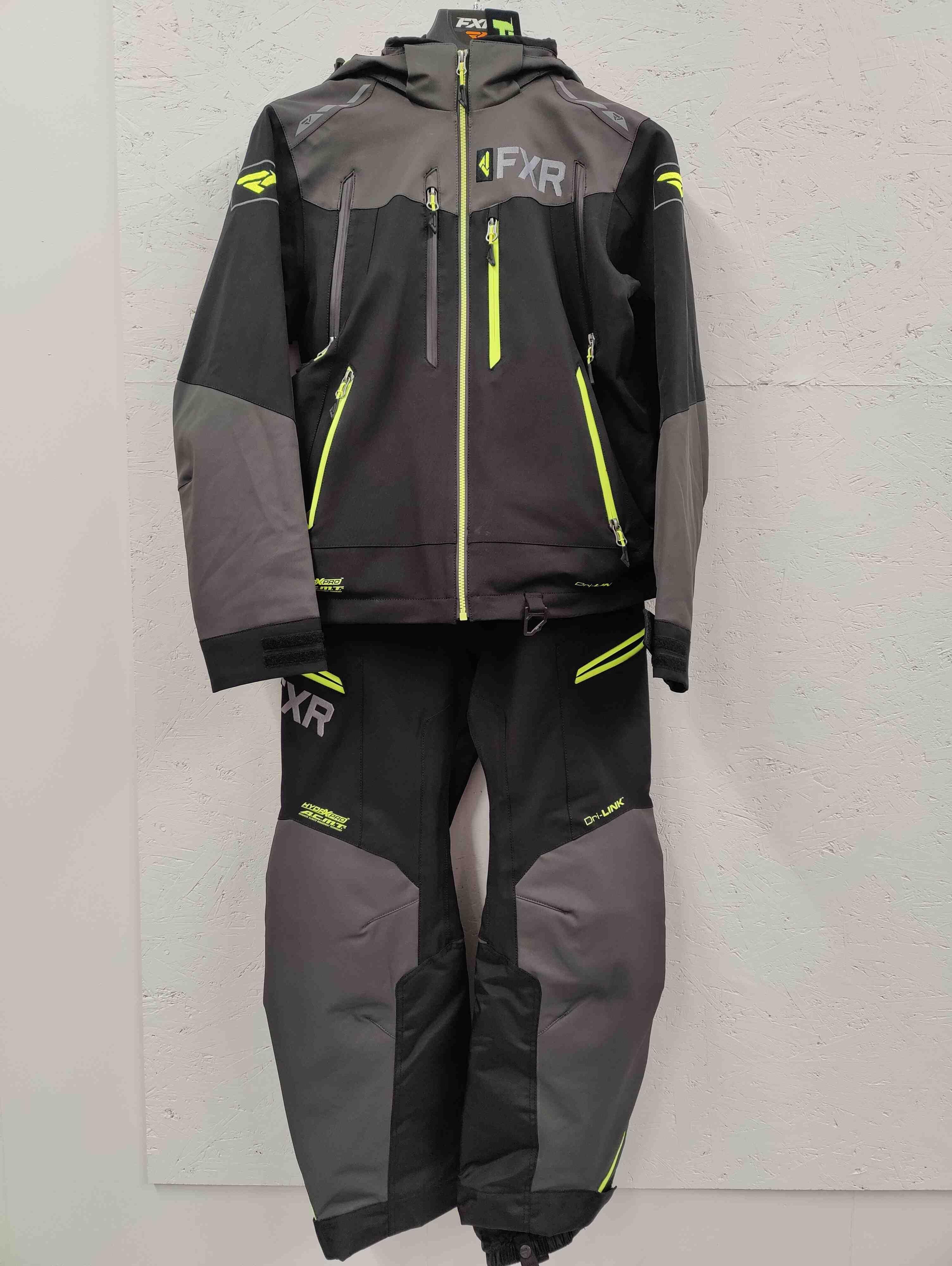 Eldre modell av FXR Elevation Lite Dri-Link 2 delt dress.Skall-bekledning av ypperste kvalitet.Farge: Black/Char/Hi-Vis Størrelse: XS