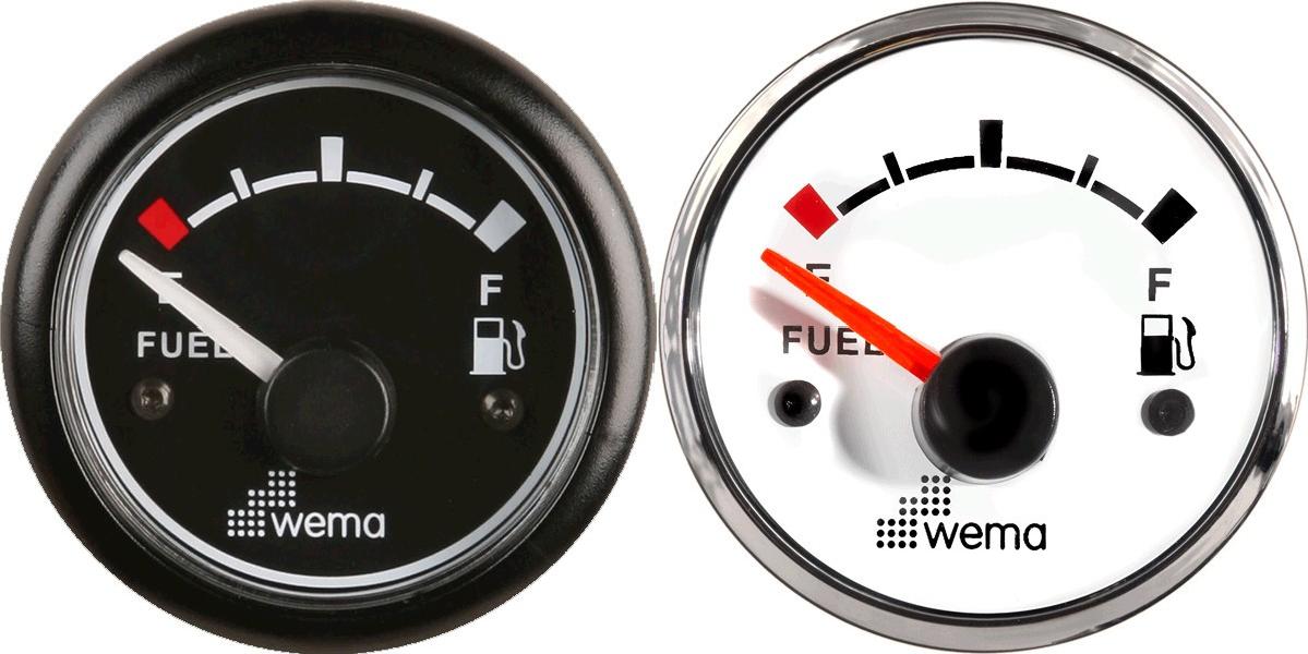 Instrumentet viser hvor mye drivstoff som er igjen på tanken. Rød eller gul bakgrunnsbelysning. Vanntett (IP=56). Resistent mot UV, ozon og saltvann. Korrosjonsbestandig.